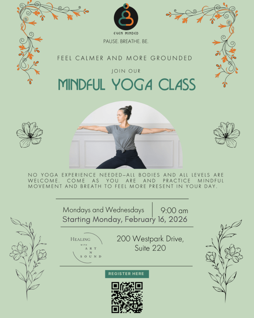 Healing with Art n Sound is thrilled to be collaborating Even Minded bringing Mindful Yoga into our shared healing space.